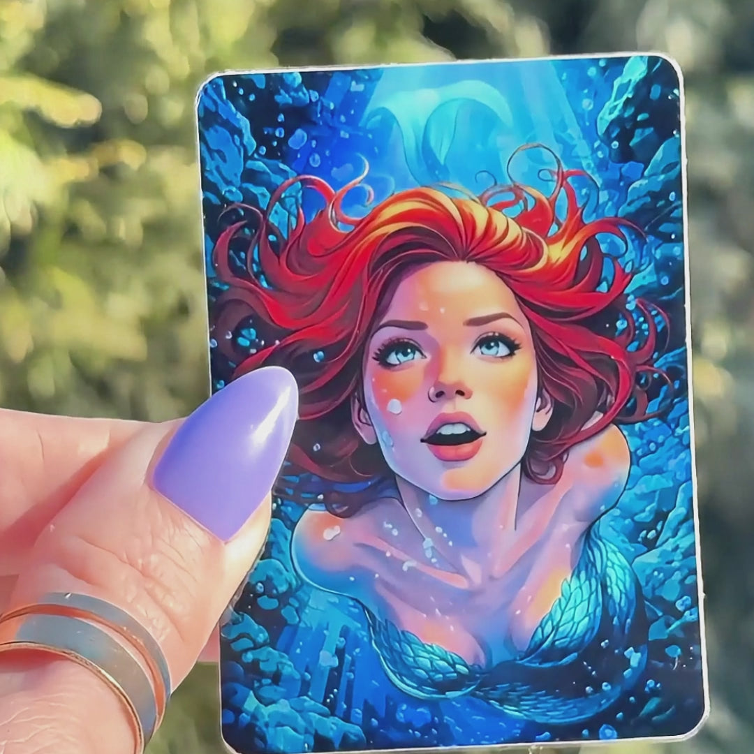 Dive into sticker perfection with this vibrant, holographic mermaid beauty, featuring Ariel, glowing with curiosity, courage, and a little sparkle from the deep. Inspired by those magical grotto vibes and underwater dreams, this waterproof vinyl sticker shines with shifting rainbow hues that’ll make your water bottle, laptop, or journal feel under-the-sea-level iconic. Perfect for mermaid lovers, ocean girls, and nostalgic 90s babies.