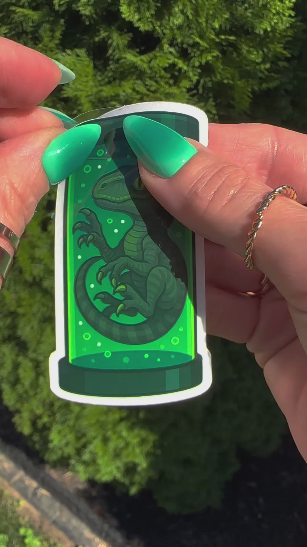 Straight from the lab where ethics took a coffee break, this baby raptor is the result of too much funding and not enough supervision. Suspended in mystery goo and bad decisions, it’s the cutest little science oops you’ll ever slap on a water bottle. Warning: may hatch with a grudge.