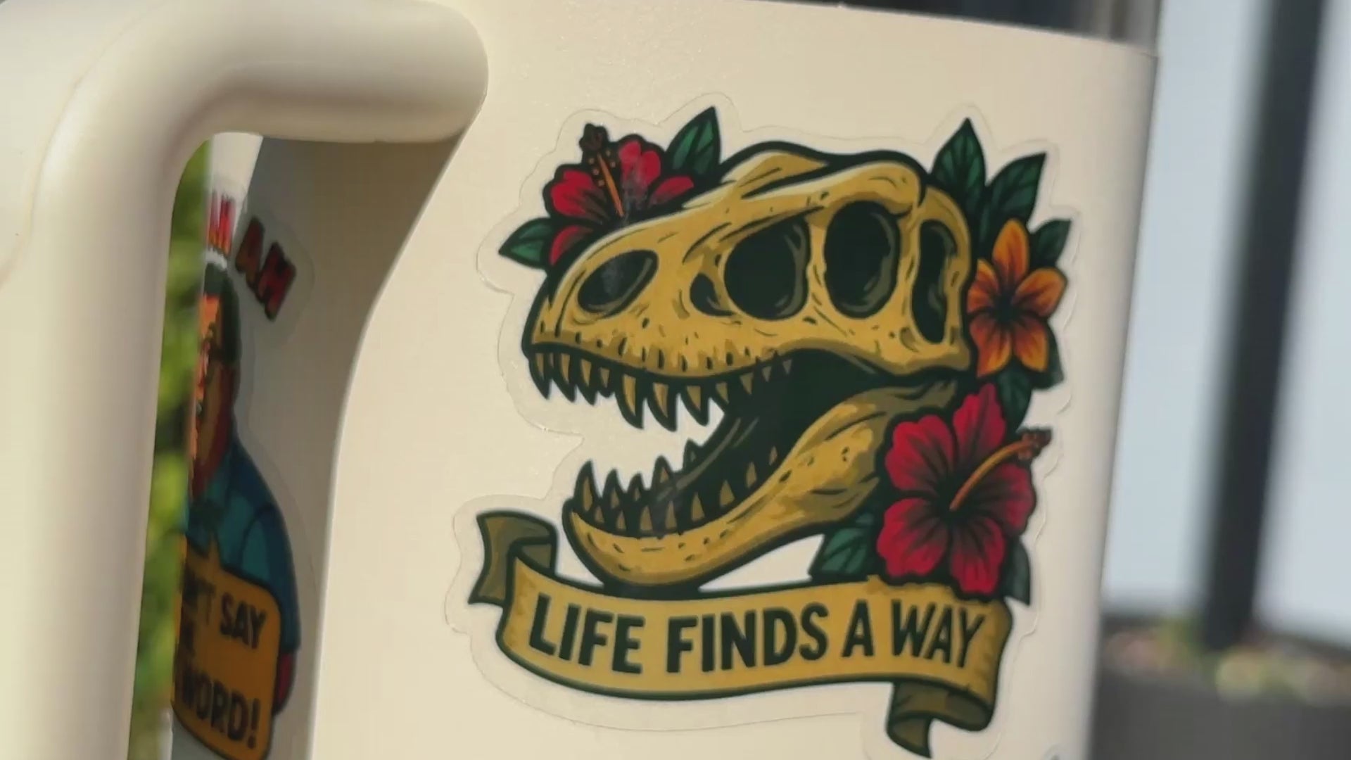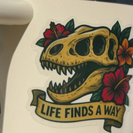 A dino skull, some tropical flair, and the haunting reminder that nature’s just out here winging it. 'Life Finds A Way', which is science-speak for oops, we made lizard birds again. Stick this on your stuff to say, "I'm cute, I'm chaotic, and I respect the hustle of evolution."